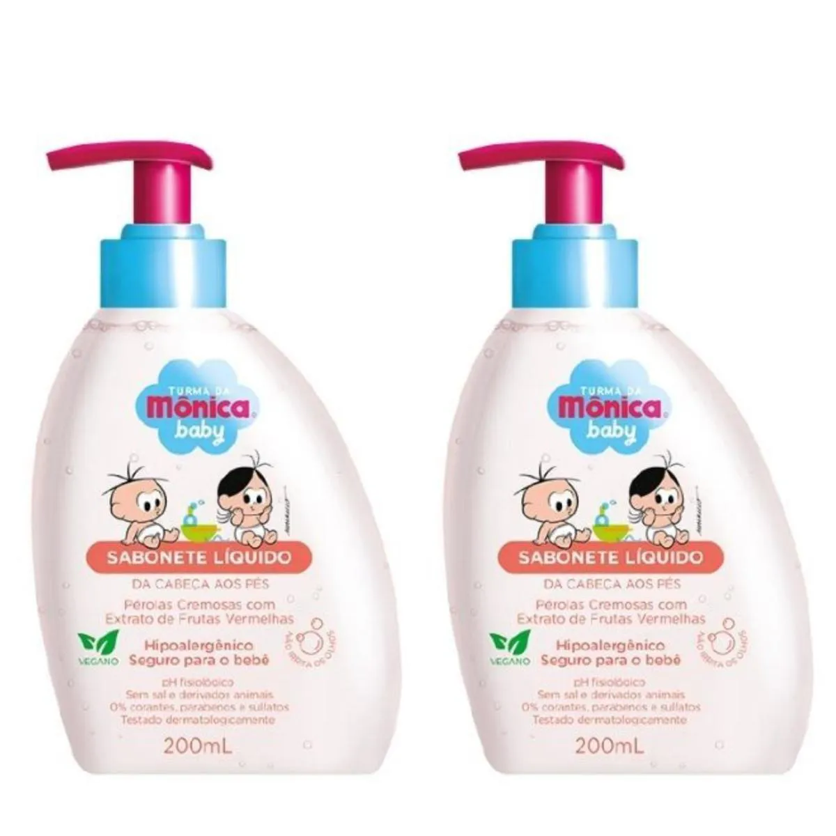 Kit c/2 sabonetes Liquido infantil Turma Da Mônica 200ml Perolado Frutas Vermelhas.