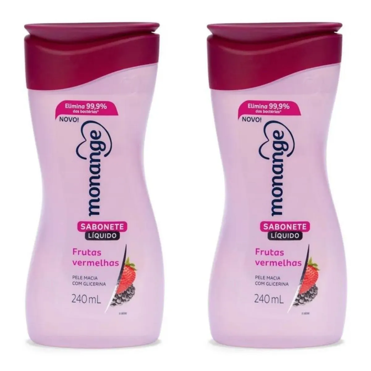 Kit c/2 sabonetes Liquido Monange 240ml Frutas Vermelhas.