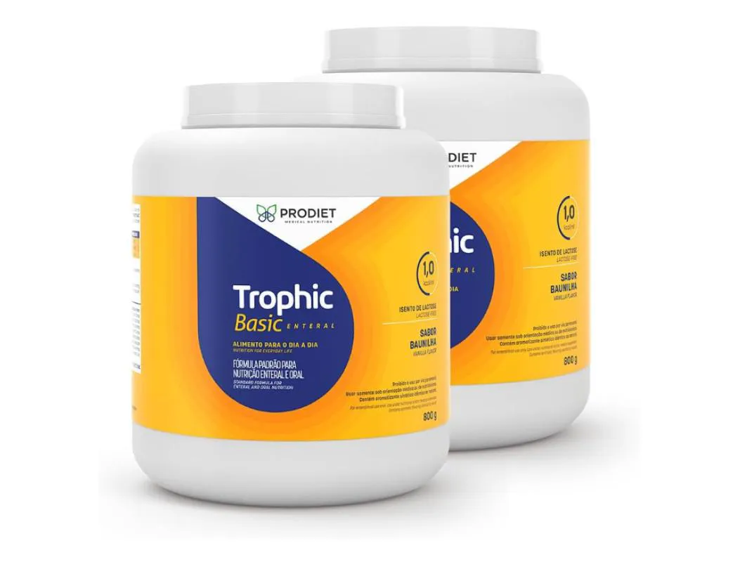 Suplemento nutricional em pó sabor baunilha para suporte nutricional completo. Trophic Basic Baunilha - Pote 800 gr O Trophic Basic Baunilha é um suplemento nutricional em pó desenvolvido para fornecer suporte nutricional completo a pessoas com ingestão alimentar insuficiente ou necessidades nutricionais específicas. Sua fórmula contém proteínas, carboidratos, gorduras, vitaminas e minerais que auxiliam na manutenção do estado nutricional e no fornecimento de energia. Pode ser utilizado como complemento da alimentação ou em dietas nutricionais específicas conforme orientação de profissional de saúde. Advertências Este produto não é medicamento. Não substitui uma alimentação equilibrada e hábitos de vida saudáveis. Contém derivados de leite. Conservar em local seco, fresco e ao abrigo da luz. Após aberto, manter a embalagem bem fechada.