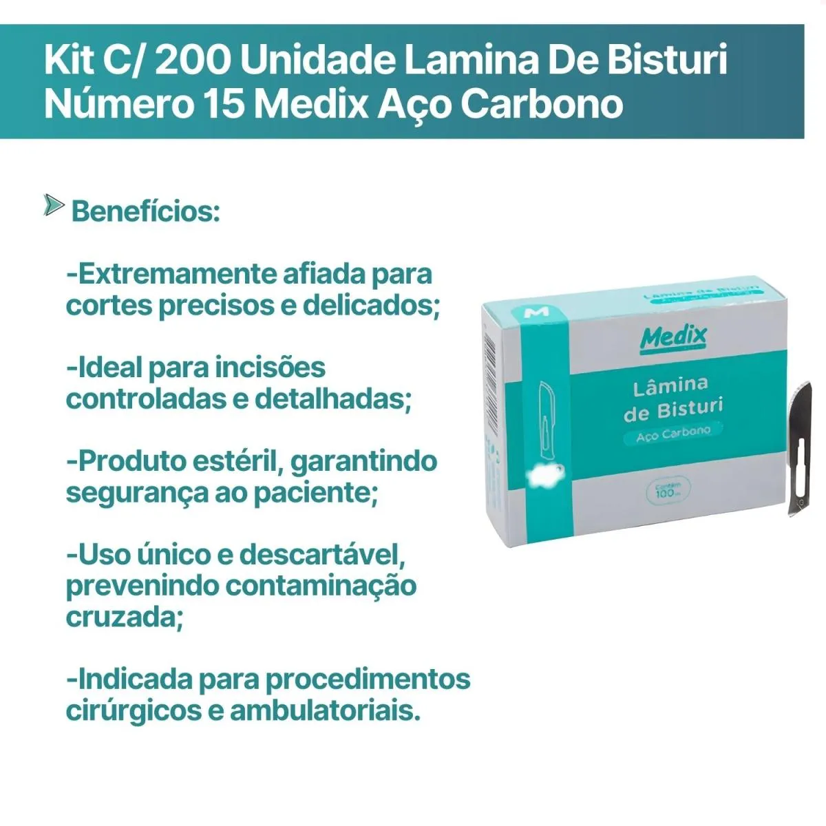 Kit C/ 200 Unidade Lamina Bisturi Número 15C Medix Aço Carb