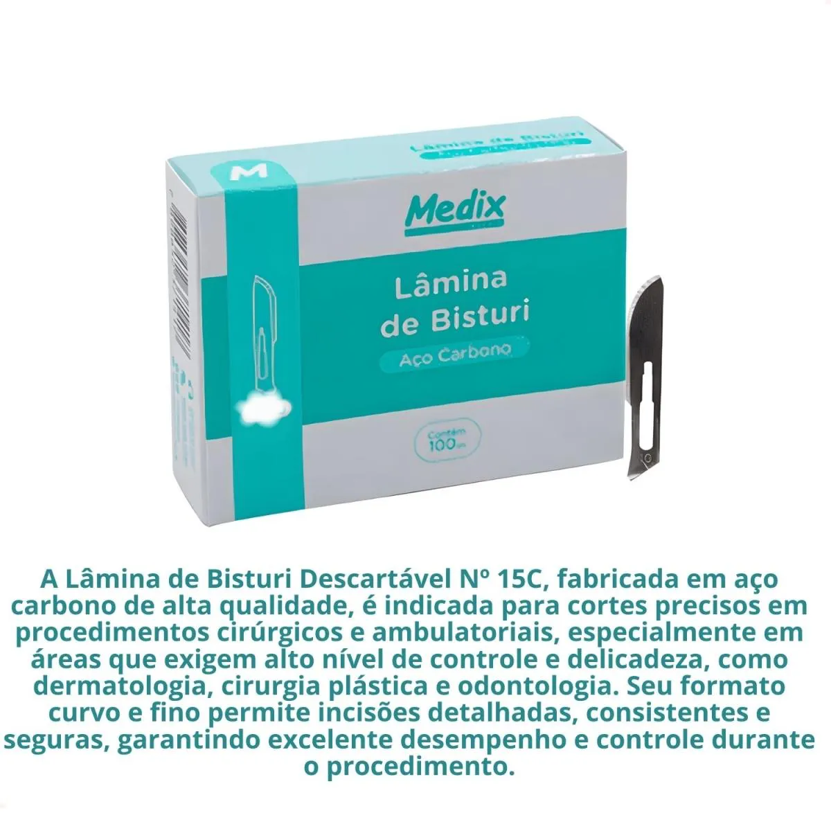 A Lâmina de Bisturi Descartável Nº 15C, fabricada em aço carbono de alta qualidade, é indicada para cortes precisos em procedimentos cirúrgicos e ambulatoriais, especialmente em áreas que exigem alto nível de controle e delicadeza, como dermatologia, cirurgia plástica e odontologia. Seu formato curvo e fino permite incisões detalhadas, consistentes e seguras, garantindo excelente desempenho e controle durante o procedimento.