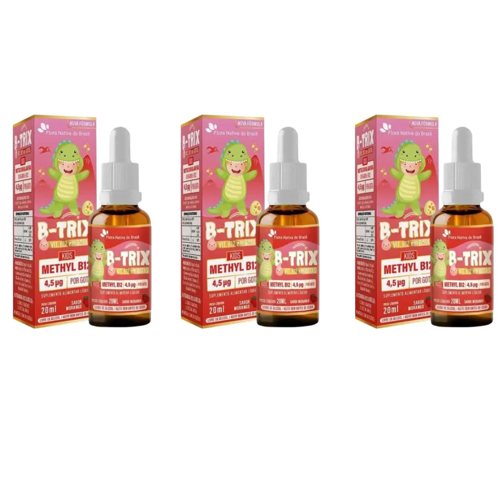 Kit C/3 B-Trix Kids B12 Morango Solução 20Ml - Flora Nativa