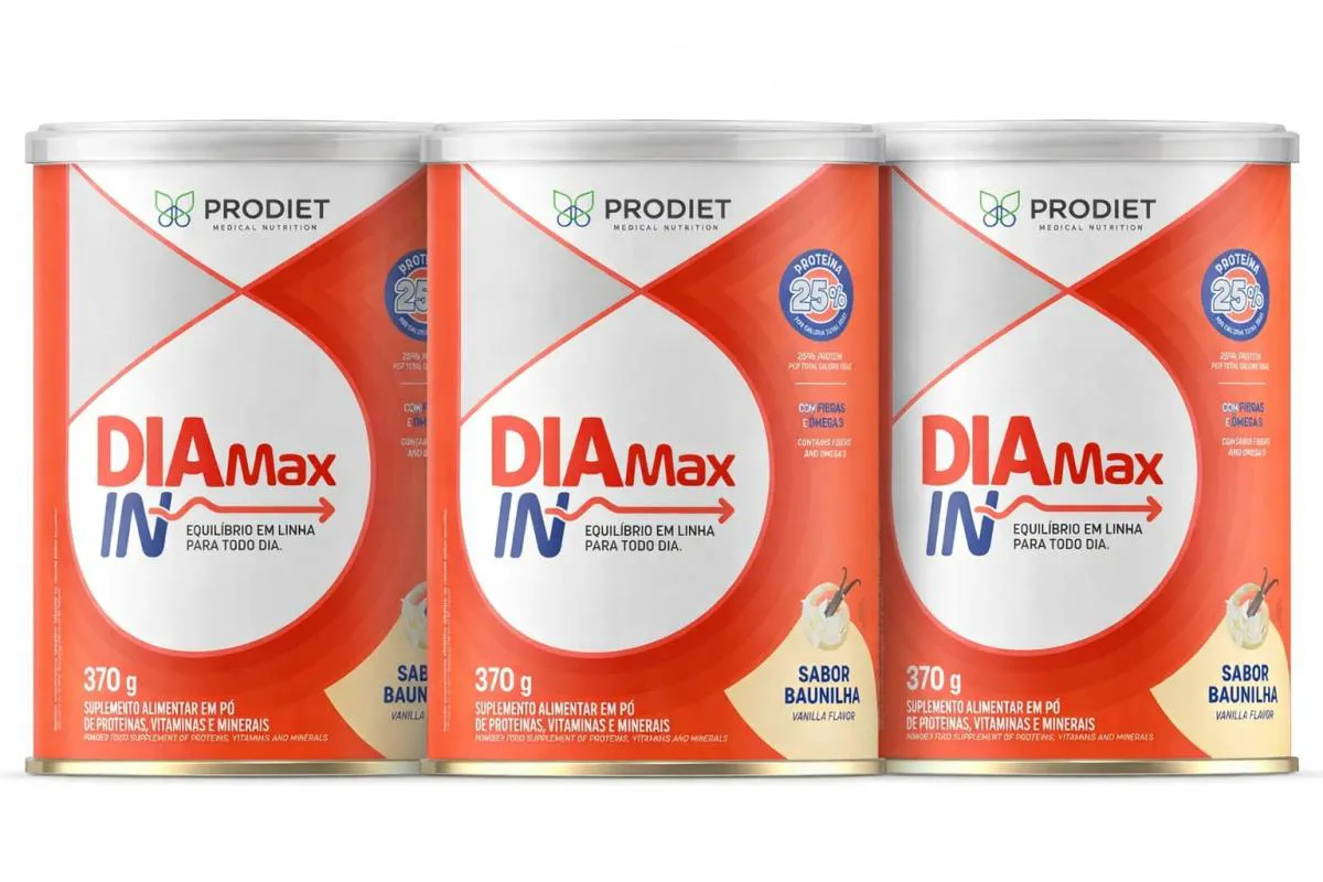 Suplemento alimentar em pó com proteínas, vitaminas e minerais para suporte nutricional diário. DiaMax IN Baunilha - Lata 740 gr O Diamax In Baunilha é um suplemento alimentar em pó desenvolvido para auxiliar na complementação nutricional de adultos. Sua fórmula contém proteínas de alto valor biológico, carboidratos, fibras, vitaminas e minerais que contribuem para a manutenção da energia, suporte nutricional e equilíbrio da alimentação diária. Possui sabor baunilha agradável e pode ser consumido entre refeições ou adicionado a preparações diversas. Aplicação e uso Adicionar a quantidade recomendada do produto em água, leite ou bebida de preferência, misturando até completa dissolução. Também pode ser consumido em preparações como: vitaminas sucos mingaus sobremesas receitas diversas Consumir conforme orientação de profissional de saúde ou nutricionista.