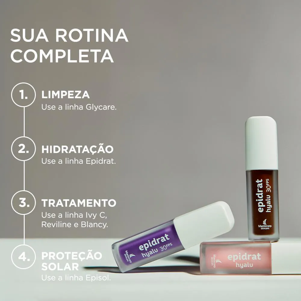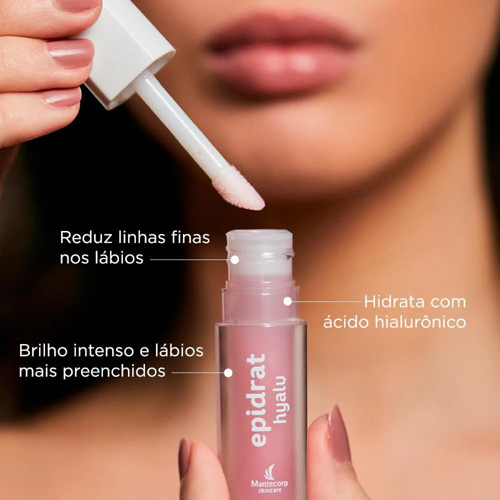 O produto é um kit composto por três unidades de lip oil, um hidratante labial transparente da marca Epidrat Hyalu. Serve para hidratar, nutrir e proteger os lábios, mantendo-os macios, suaves e com aspecto saudável, prevenindo ressecamento e auxiliando na recuperação da delicada pele labial.