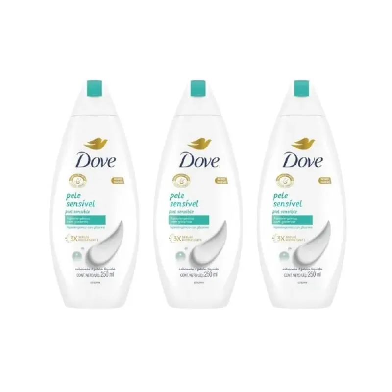 Kit c/3 sabonetes Líquido Dove 250ml Pele Sensivel.