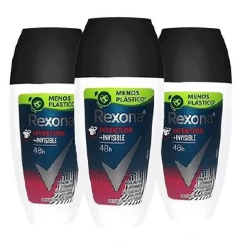 Kit C/3 Unidades de Desodorante Rexona Rollon Men Anti Invisible 50Ml