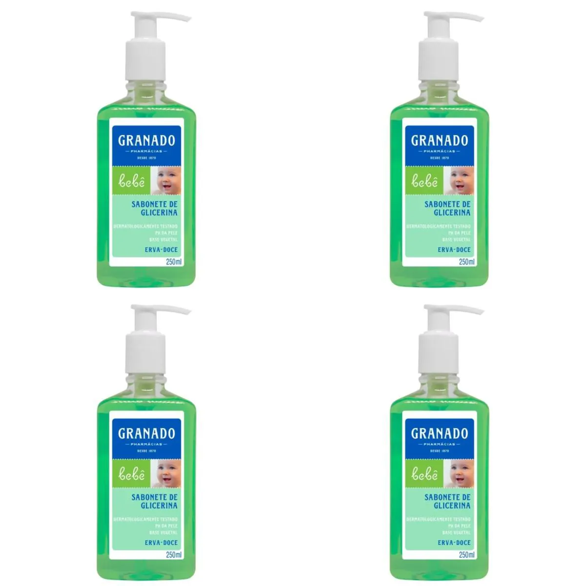 Kit c/4 sabonetes Líquido infantil Granado Bebê 250ml Erva Doce.