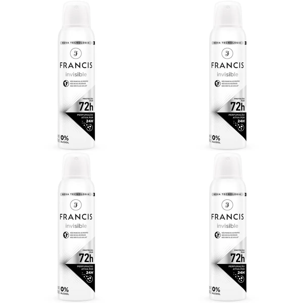 Kit C/4 Unidades de Desodorante Aero Francis 150Ml Clássico Preto