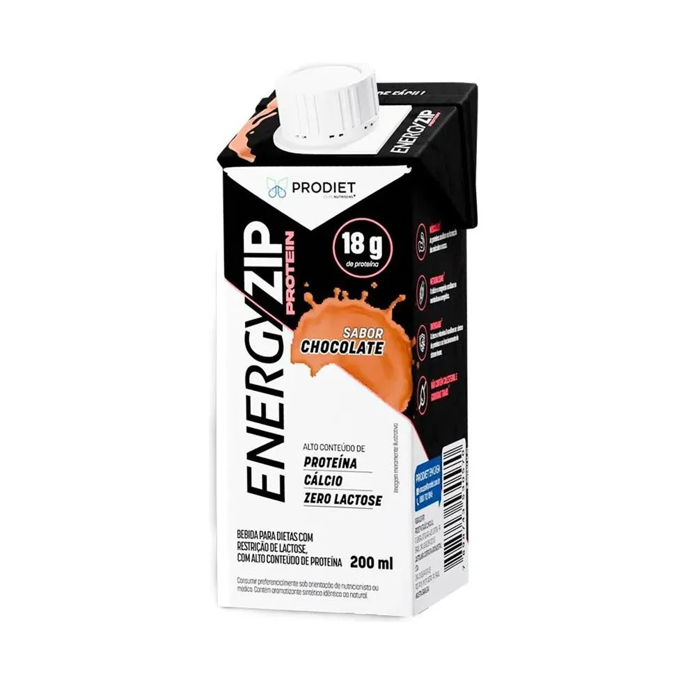 Bebida proteica pronta sabor chocolate com proteínas, vitaminas e minerais. Energyzip Protein Chocolate - Frasco 200ml O Energyzip Protein Chocolate é uma bebida nutricional pronta para consumo, desenvolvida para complementar a ingestão diária de proteínas e nutrientes essenciais. Indicado para adultos que necessitam de reforço proteico na alimentação, auxilia na manutenção da massa muscular, recuperação nutricional e suporte energético. Sua apresentação em frasco pronto para beber oferece praticidade para consumo em qualquer momento do dia, especialmente entre refeições ou após atividades físicas. Advertências Este produto não é medicamento. Não substitui uma alimentação equilibrada e hábitos de vida saudáveis. Contém derivados de leite. Conservar em local seco e fresco. Após aberto, manter refrigerado e consumir em até 24 horas.