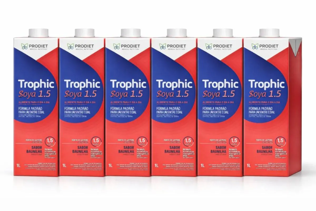Dieta nutricional hipercalórica à base de soja sabor baunilha para suporte nutricional. Trophic Soya 1.5 Sabor Baunilha - 1 litro O Trophic Soya 1.5 Baunilha é uma dieta nutricional líquida hipercalórica desenvolvida à base de proteína de soja para fornecer suporte nutricional completo. É indicada para pessoas com ingestão alimentar reduzida, necessidades energéticas aumentadas ou que necessitam de dietas com restrição ao consumo de proteínas do leite. Sua fórmula fornece proteínas, carboidratos, gorduras, vitaminas e minerais essenciais, podendo ser utilizada por via oral ou enteral, conforme orientação de profissional de saúde. Advertências Este produto não é medicamento. Deve ser utilizado sob orientação de profissional de saúde. Contém derivados de soja. Conservar em local fresco e seco. Após aberto, manter refrigerado e consumir em até 24 horas.
