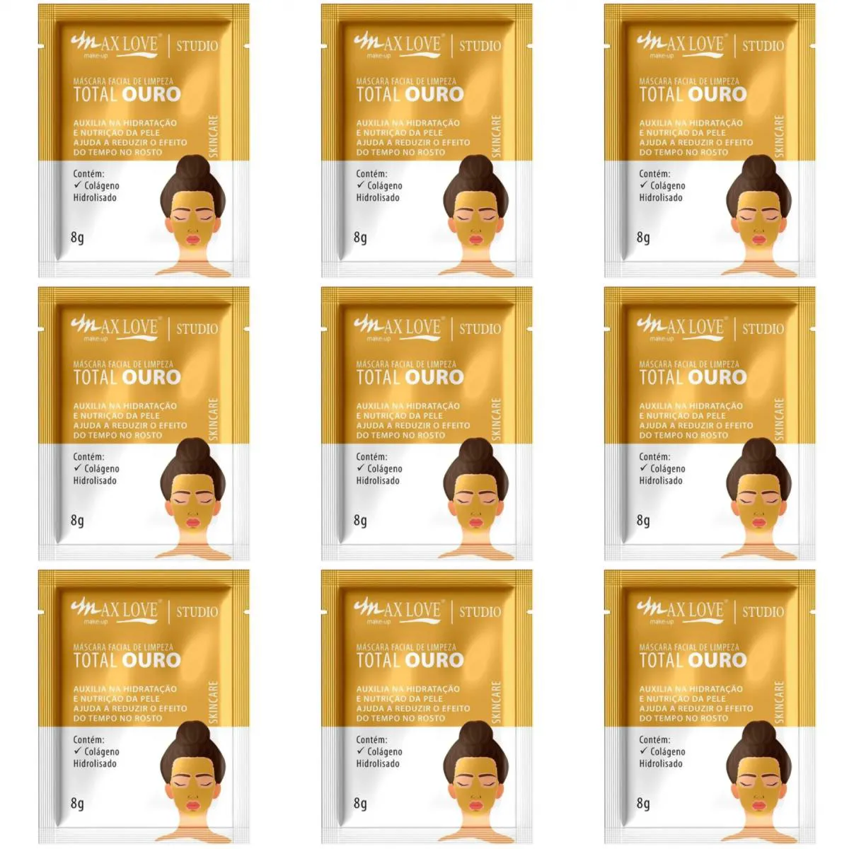 Kit c/9 máscara facial Peel Off 8g Ouro Max Love.