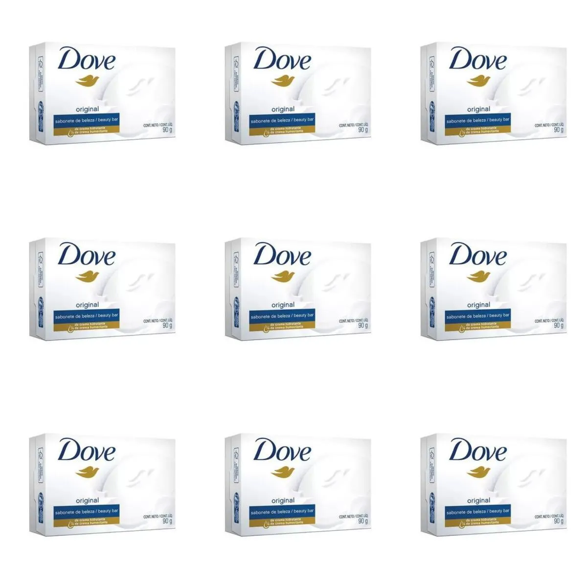 Kit C/9 Unidades de Sabonete Dove 90G Branco.