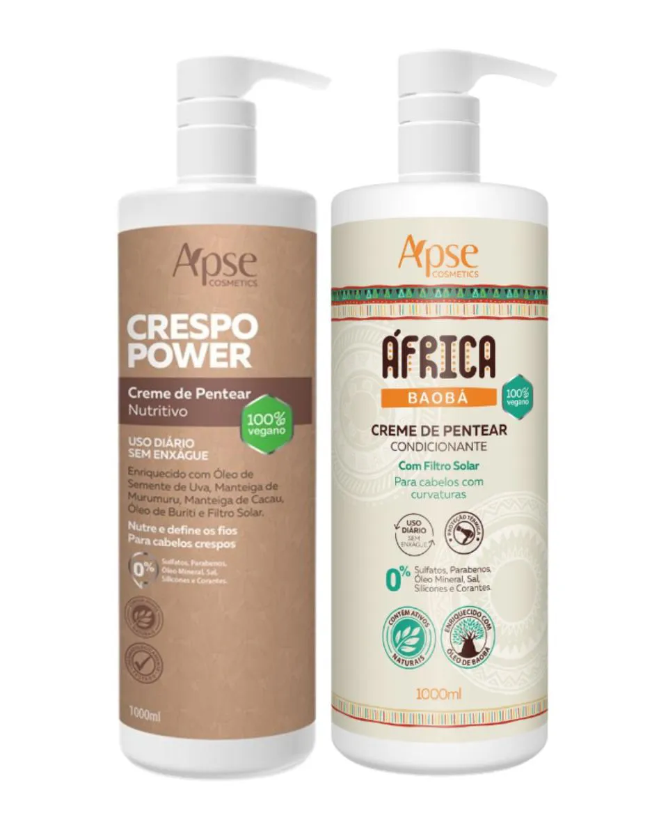 Kit creme de pentear Crespo Power e Baoba Africa 1 LITRO Apice