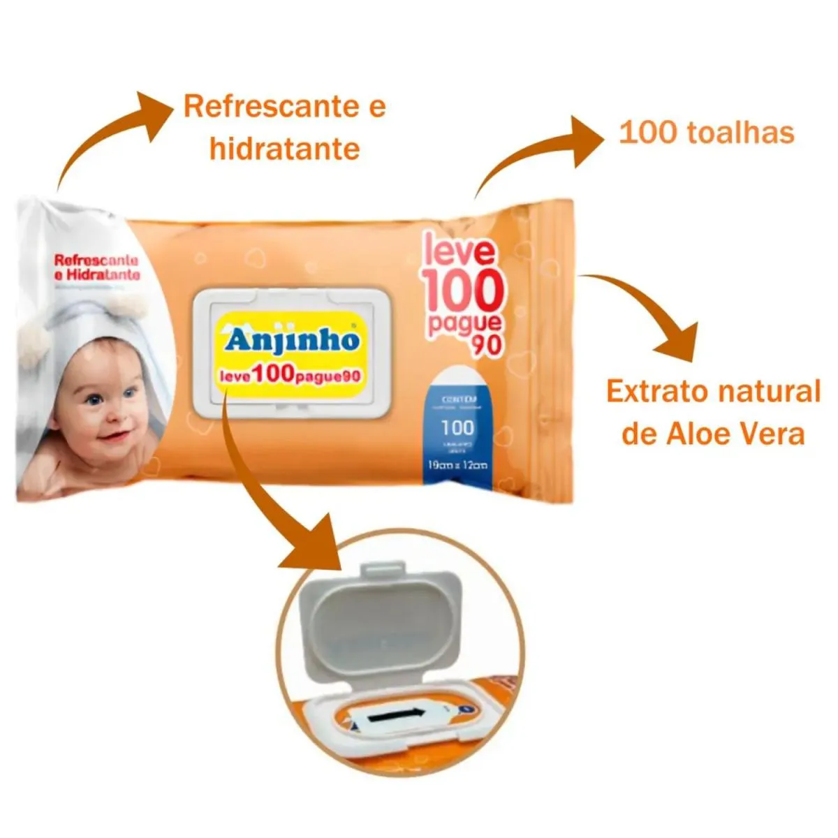 100 lenços umedecidos (pague 90) – Anjinho Imagens Meramente Ilustrativas. Todas as Informações Divulgadas são de Responsabilidade Exclusiva do Fabricante/fornecedor.
