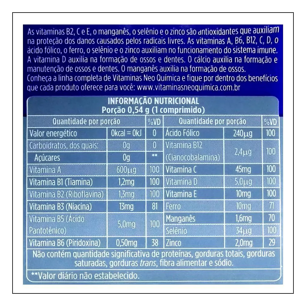 É um multivitamínico especialmente formulado para atender às necessidades nutricionais de adultos e idosos, contribuindo para a manutenção da saúde óssea, fortalecimento do sistema imunológico, saúde da pele, unhas e cabelos, e oferecendo ação antioxidante.