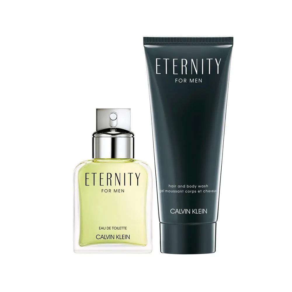 Calvin Klein Eternity Eau de Toilette. Distintivo. Romântico. Atemporal. Experimente bergamota e tangerina frescas, florais terrosos e musgo encharcado de chuva. Uma refrescante fragrância fougère, equilibrando notas de saída de tangerina, sálvia e gálbano com um coração de manjericão, gerânio e lavanda, fundamentado em cedro masculino, musgo e âmbar. Este conjunto de presente Eternity for Men inclui: - Eternity 50ml (1,6oz) Eau de Toilette for Men - Eternity 100ml (3,3oz) Shower Gel