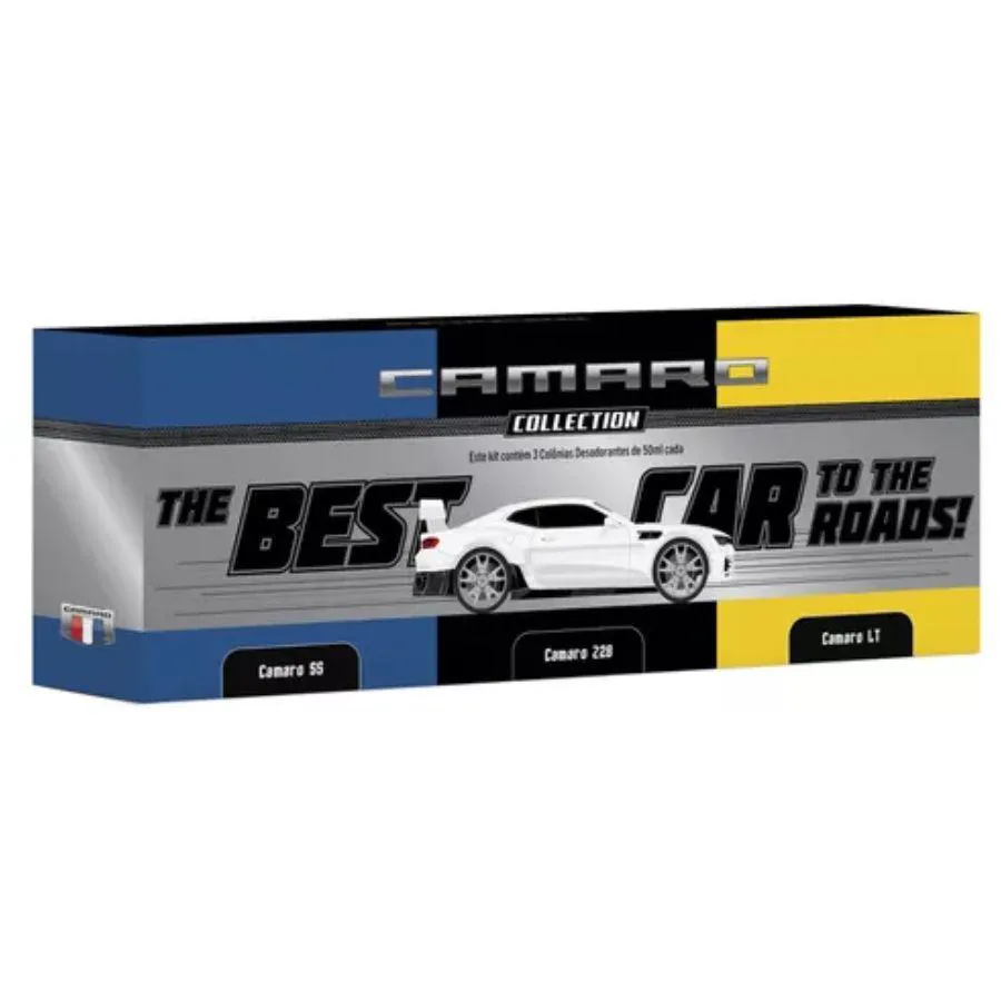 KIT CAMARO COLLECTION Para onde você iria se quisesse viver um sonho de velocidade? Cada fragrância da coleção é uma homenagem aos modelos icônicos e às cidades onde as quatro rodas do Camaro brilham com imponência. Cada modelo inesquecível de Camaro rodando uma cidade diferente. SS em Miami, Z28 pela cidade de NY, e LT por Los Angeles. Contém:1 Colônia Camaro SS 50ml1 Colônia Camaro Z28 50ml1 Colônia Camaro LT 50ml Camaro SS Fougére Aromático, com notas de Anis, Lavanda e Musk. Camaro Z28 Amadeirado Ambarado, com notas de Lichia, Noz Moscada e Âmbar. Camaro LT Fougére Aromático, com Notas Marinha, Zimbro e Patchoulli.