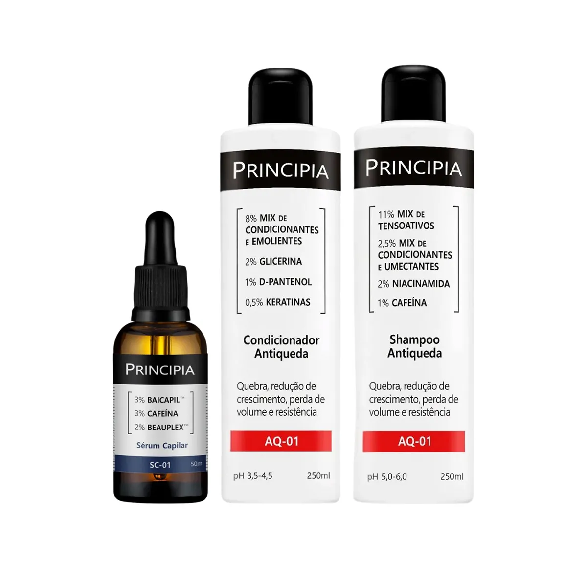 Kit Antiqueda Principia Skincare AQ-01 Shampoo 250ml + Condicionador 250ml + Sérum Capilar SC-01 50ml