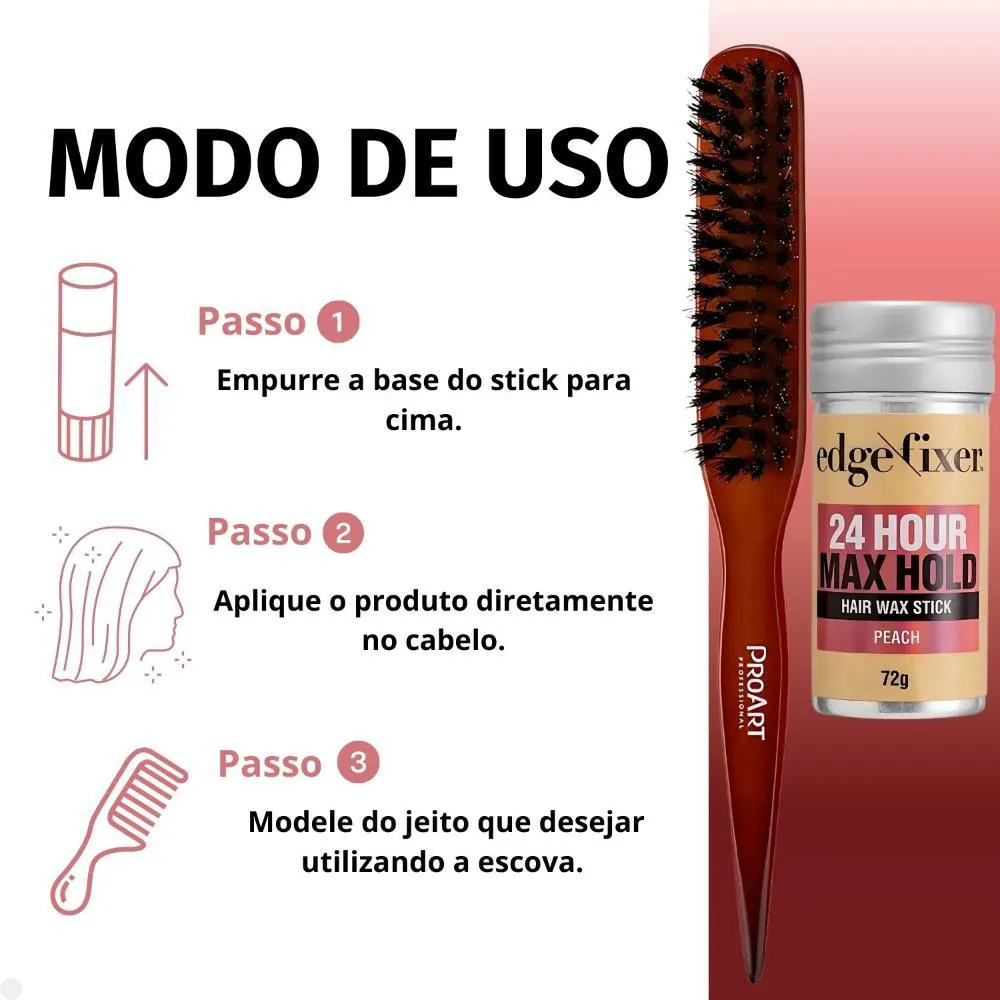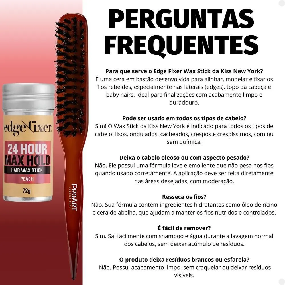 O que é e para que serve o Kit Cera Fixadora De cabelo Edge Fixer Kiss New York Pêssego E Escova Para Acabamento E Penteado Proart?