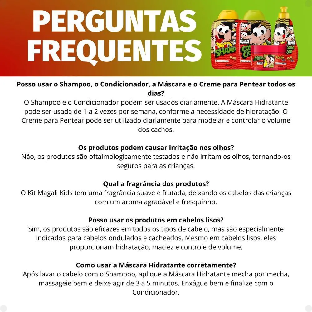 O Shampoo Cia da Natureza Magali Kids é um produto de limpeza capilar que limpa suavemente os cabelos, hidratando e nutrindo os cachos, deixando-os macios e com cheiro agradável.