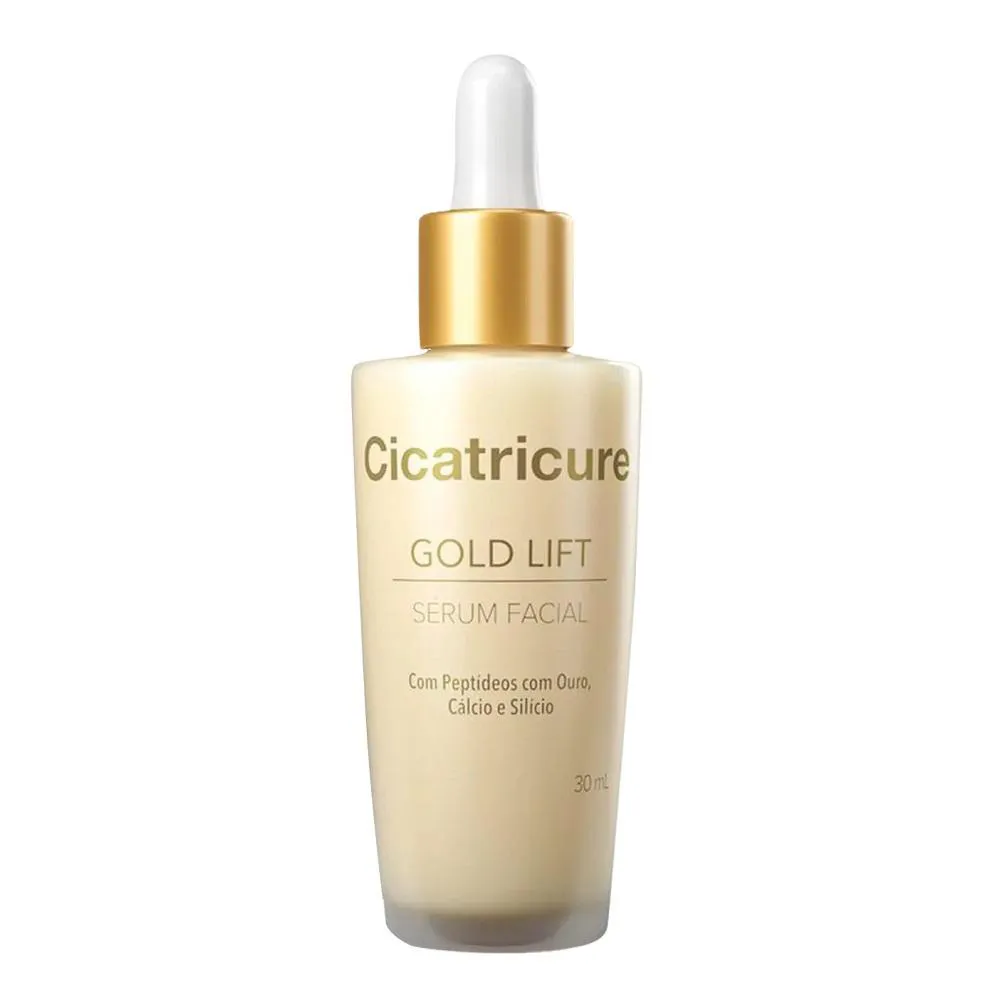 Cicatricure® Gold Lift - Sérum Facial 30ml: efeito Firmador combina o poder dos Peptídeos com Ouro, do Cálcio e do Silício, aumentando a elasticidade da pele, definindo o contorno facial e firmando a pele do rosto. Em duas semanas, ajuda a reduzir rugas gravitacionais.