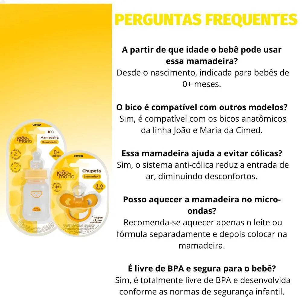 - Permite a adaptação do fluxo conforme o crescimento do bebê, graças à compatibilidade com bicos anatômicos João e Maria de fluxo suave, médio e rápido, prolongando a vida útil da mamadeira.