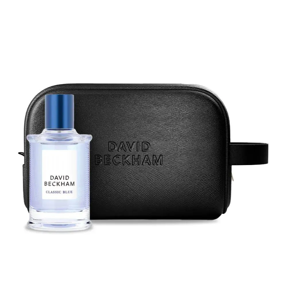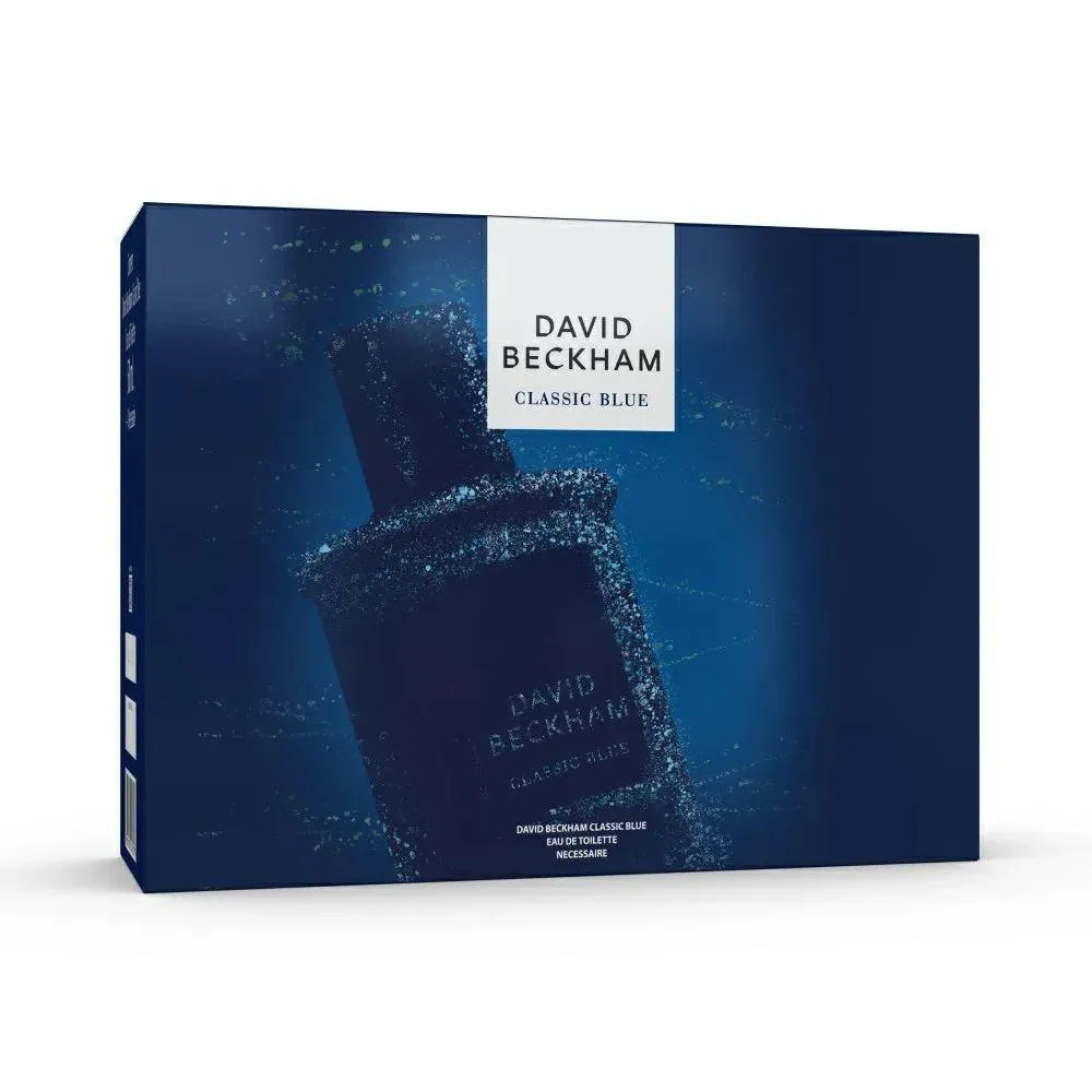 Conjunto masculino com perfume Classic Blue fougère especiado, com nécessaire de David Beckham. Uma fragrância cativante e ousada para homens.
