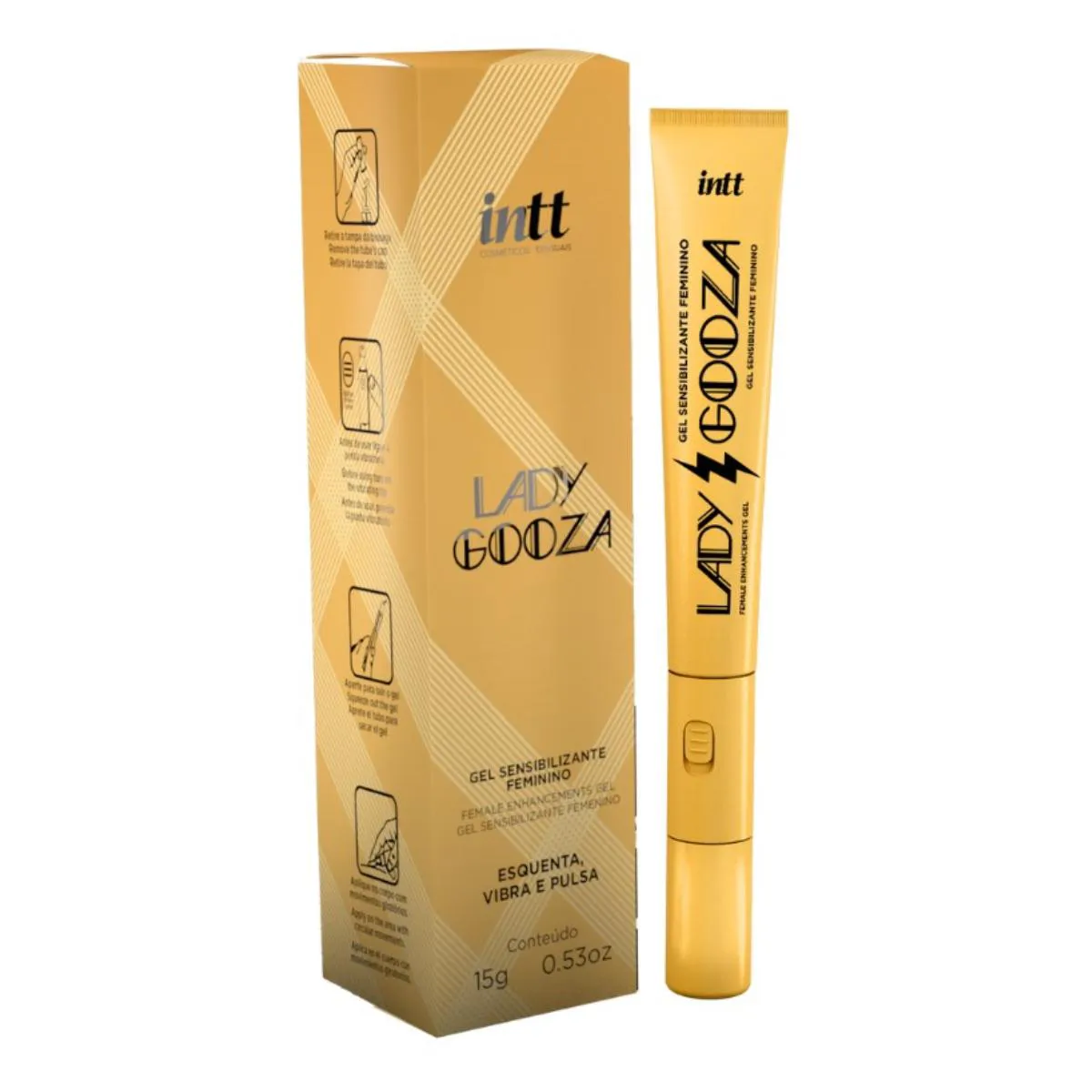 Gel feminino estimulante que esquenta, pulsa, vibra e excita, com cápsula vibratória para maior estímulo e prazer. Indicado para aumentar o desejo sexual, estimular o clitóris e conhecer melhor os pontos de prazer feminino. Fórmula com extratos naturais como Hamamelis e Stryphnodendron, além de componentes que potencializam a excitação. Composições:Cliv Intt Gold: Aqua, Flavour, Glycerin, Monoisopropanolamine, Sodium Cyclamate, Aspartame, Sodium Saccharin, Silicon Dioxide, Acesulfame K, Eugenia Caryophyllus Oil, Sodium Benzoate, EDTA, Corantes CI 42090 e CI 73015. InttRu Gold: Água, Glicerina, Hydroxyethyl Cellulose, Parfum, Alpha-isomethyl Ionone, Benzyl Salicylate, Citronellol, Coumarin, Hexyl Cinnamal, Linalool, Imidazolidinyl Urea. Lady Gooza: Aqua, Flavour, Hamamelis Virginiana Leaf Extract, Stryphnodendron Adstringens Bark Extract, Alcohol, Sodium Cyclamate, Aspartame, Sodium Saccharin, Silicon Dioxide, Acesulfame K, Propylene Glycol, Carbomer, Monoisopropanolamine, Corantes CI 45430, CI 16185, CI 16255, Sodium Benzoate, EDTA, BHT. Modo de uso: