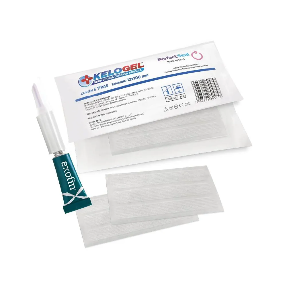 KIT COLA CIRURGICA EXOFIN 1ML CX 10UN + 1CX STERISTRIP O Kit Exofin + Steri-Strip Kelogel oferece uma solução prática e eficiente para fechamento e proteção de feridas e incisões cirúrgicas, garantindo segurança e excelente rendimento. Composto por 1ml de adesivo cirúrgico Exofin, aliado a 60cm de sutura cutânea adesiva Steri-Strip Kelogel, este kit é ideal para procedimentos que exigem precisão e durabilidade. Seu rendimento é de 40 a 50cm, proporcionando flexibilidade no uso. O adesivo cirúrgico Exofin forma uma camada protetora sobre a pele, atuando como uma barreira contra infecções e facilitando a cicatrização. Ele oferece adesão rápida, com secagem em segundos. A sutura Steri-Strip Kelogel proporciona suporte adicional ao fechamento da ferida, aliviando a tensão da pele e garantindo uma cicatrização uniforme e esteticamente satisfatória. Indicação de uso: Ideal para procedimentos cirúrgicos, fechamento de incisões, feridas pequenas e cortes superficiais. O kit é uma alternativa eficiente às suturas tradicionais, ajudando a minimizar cicatrizes visíveis. Modo de uso: Aplique o adesivo Exofin sobre a incisão limpa e seca, espalhando-o com cuidado para garantir cobertura uniforme. Aguarde até que seque completamente. Em seguida, aplique as tiras Steri-Strip Kelogel sobre a área tratada para reforçar o fechamento. Com o Kit Exofin + Steri-Strip Kelogel, você garante resultados profissionais, com praticidade e segurança, otimizando o tempo de recuperação e promovendo uma cicatrização eficiente e estética. Registro ANVISA: 80117581118 e 81926099008.