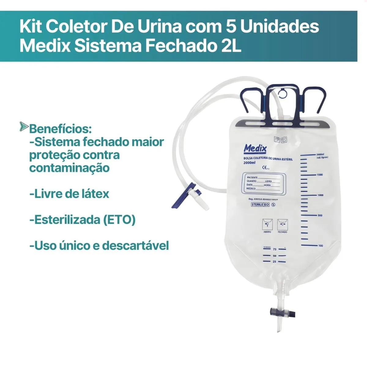 Kit Coletor de Urina com 5 Unidades Medix Sistema Fechado 2L