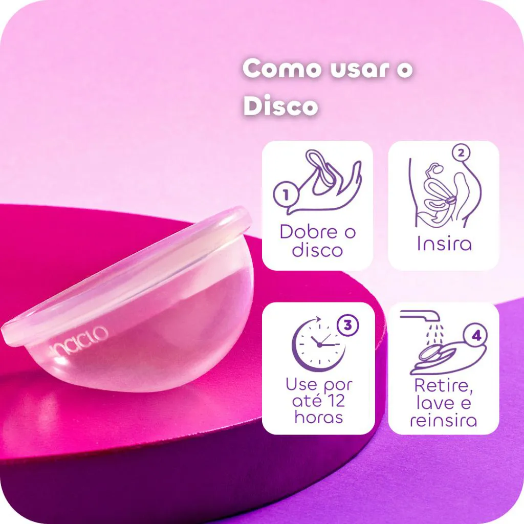 Mais fácil de retirar – tanto a base, quanto a haste têm texturas que aumentam o atrito dos dedos e facilitam a retirada. A haste também está melhor. Agora, ela é arredondada e mais maleável. Sexo + Menstrução = Disco Menstrual O Disco menstrual é a liberdade que você merece para fazer tudo o que quiser todos os dias do mês.