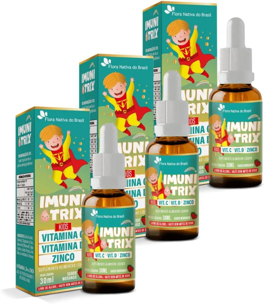 Kit com 03 - Imunitrix Kids (Vitamina C + D + Zinco) 30Ml Sabor Morango Flora Nativa