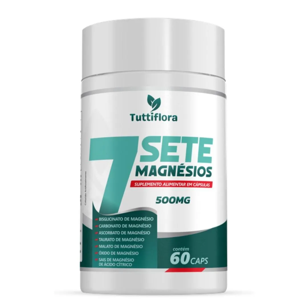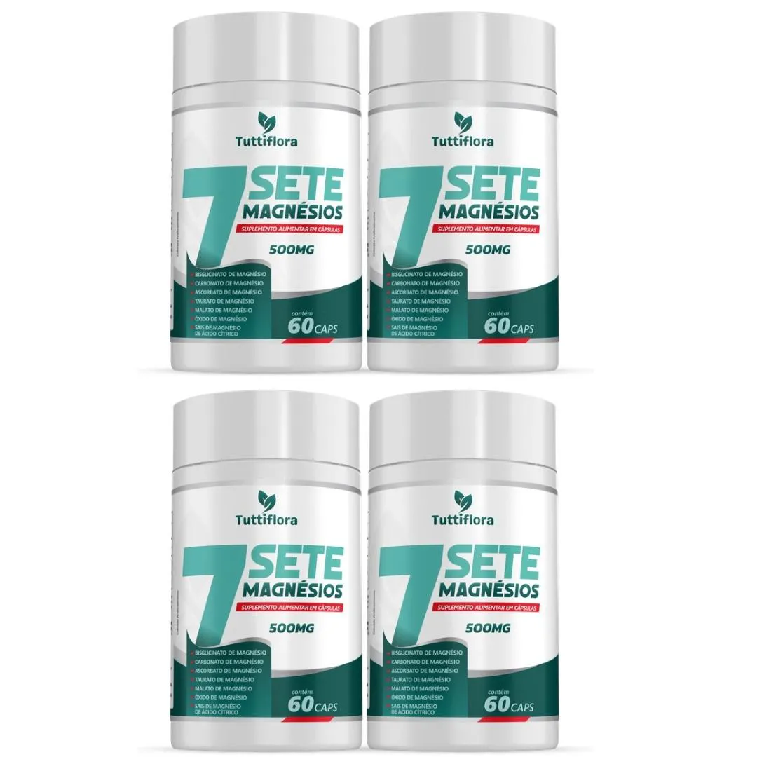 Kit Com 04-7Sete Magnésios (Bisglicinato, Carbonato, Ascorbato, Taurato, Malato +) 60 Cápsulas 500mg Tuttiflora