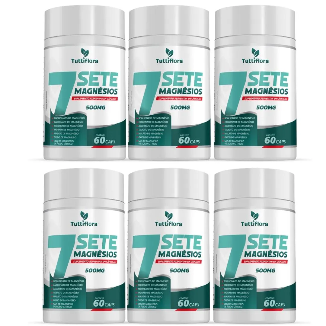 Kit Com 06-7Sete Magnésios (Bisglicinato, Carbonato, Ascorbato, Taurato, Malato +) 60 Cápsulas 500mg Tuttiflora