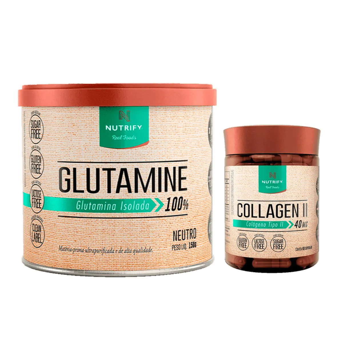 O Kit da Nutrify contém: 1 - glutamina - 150g 1 - Collagen II - 60 cáps