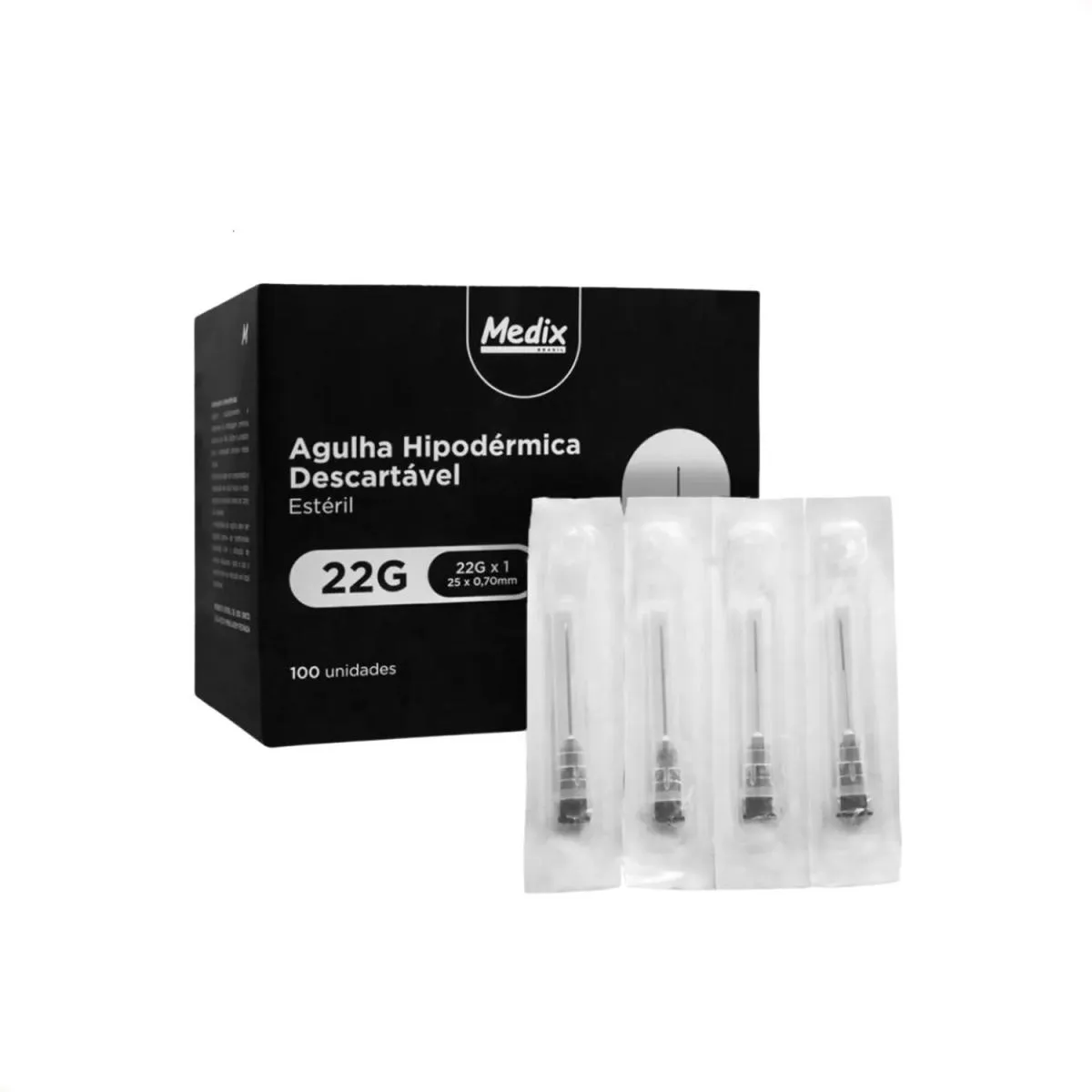 Kit com 100 agulhas descartáveis 22G 25 x 0,70 mm - Medix