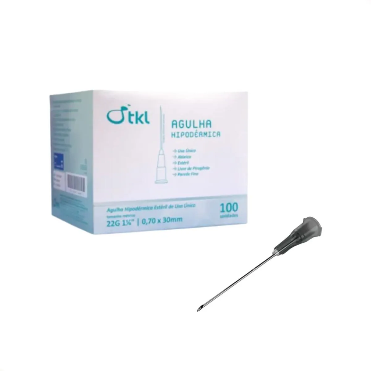 Kit com 100 Agulhas hipodérmicas descartáveis 30x0,70 mm (22G 1 1/4?) TKL