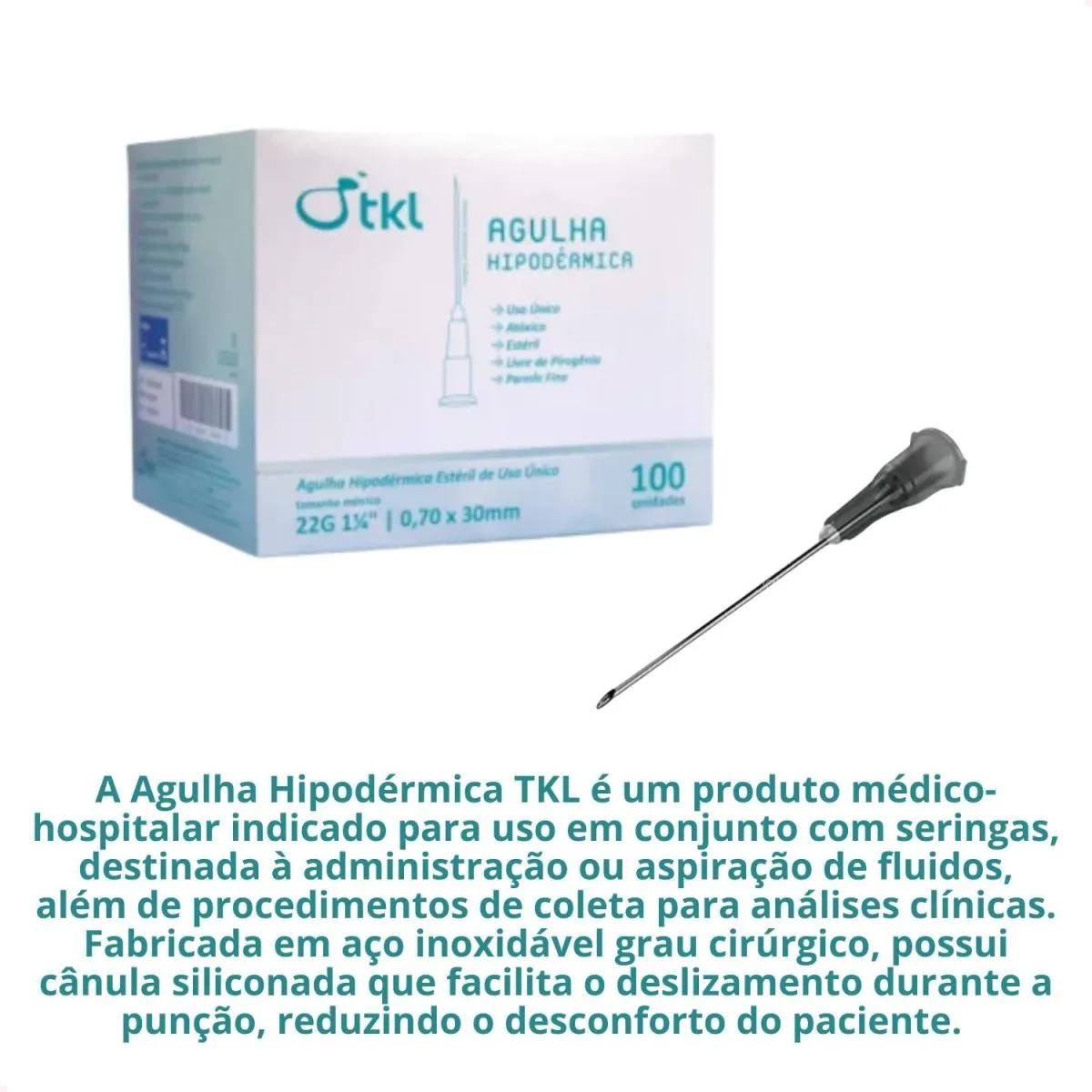 Kit com 100 Agulhas Hipodérmicas Descartáveis 30X0,70 Mm Tkl