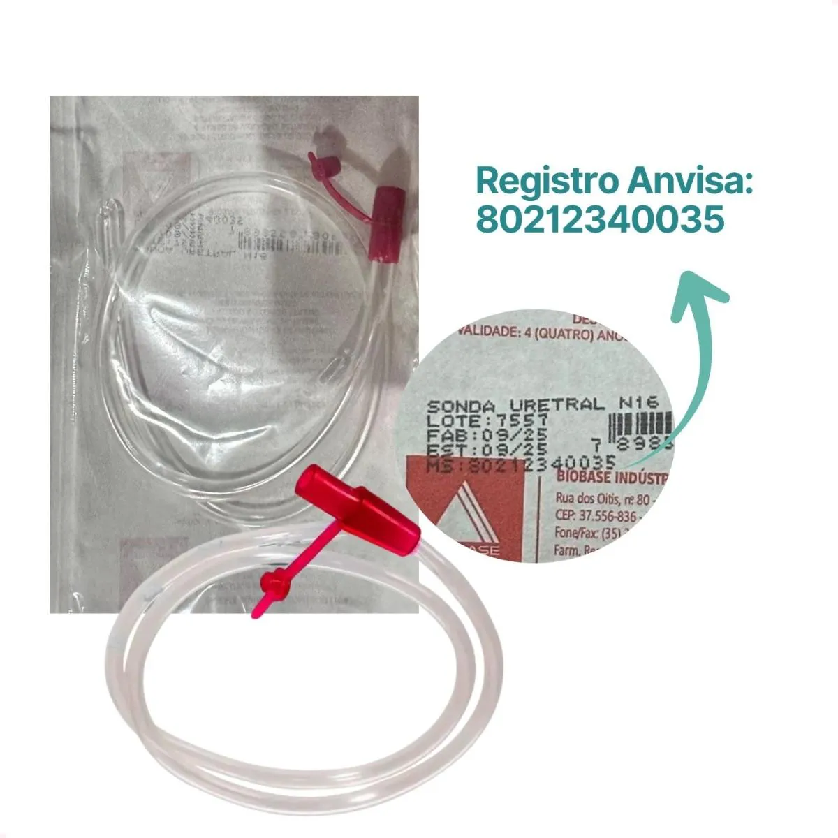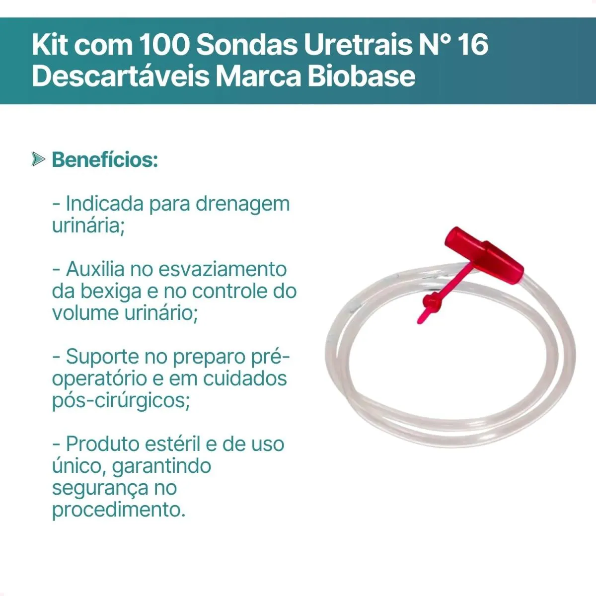 Kit com 100 Sondas Uretrais N° 16 Descartáveis Marca Biobase