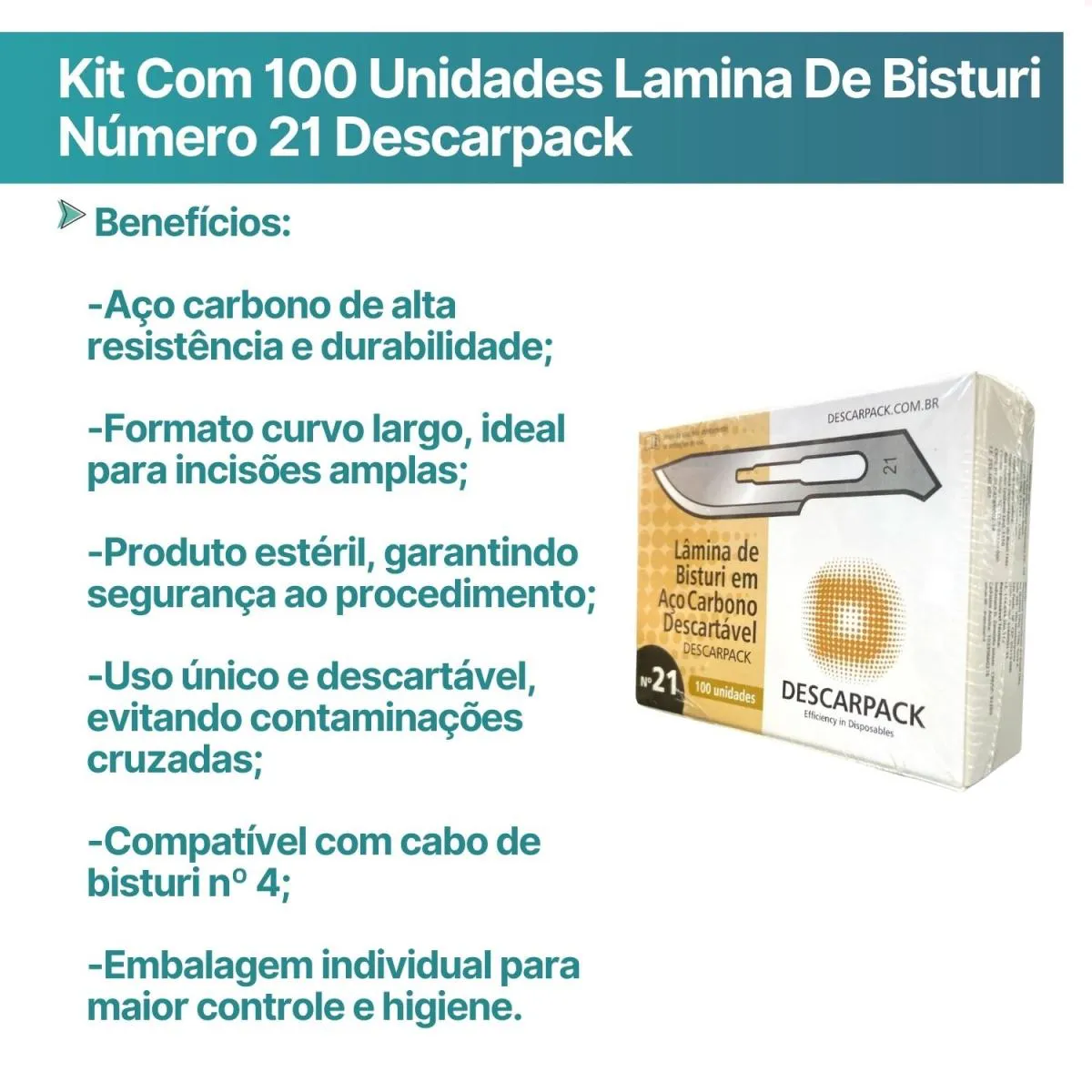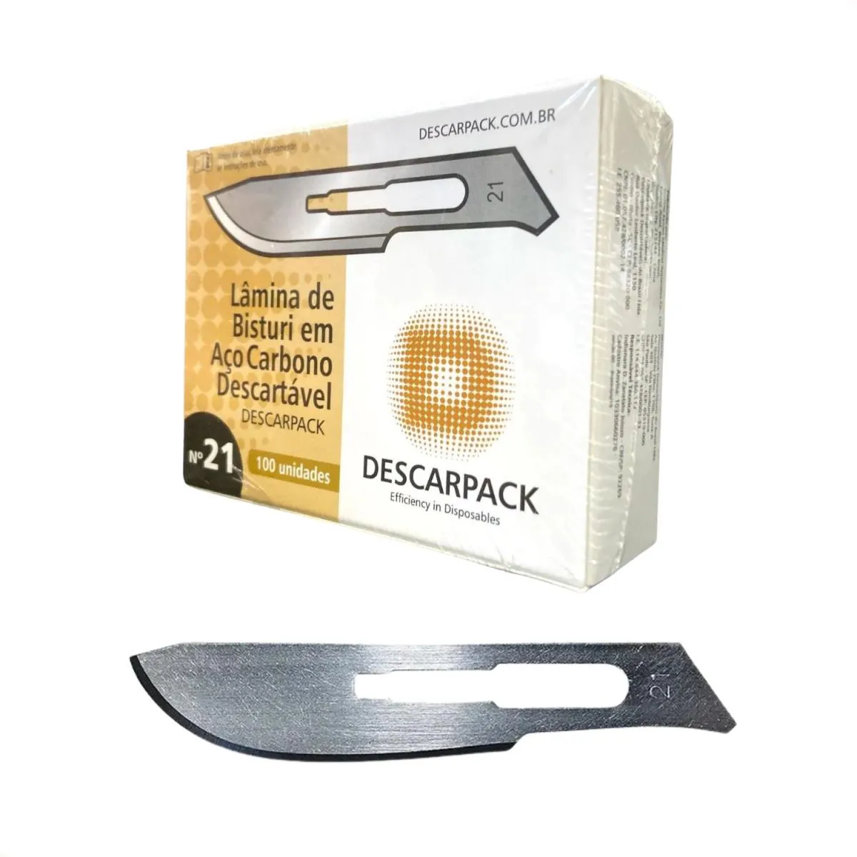 Lâmina de Bisturi Descartável Nº 21 ; Descarpack | Caixa com 100 Unidades