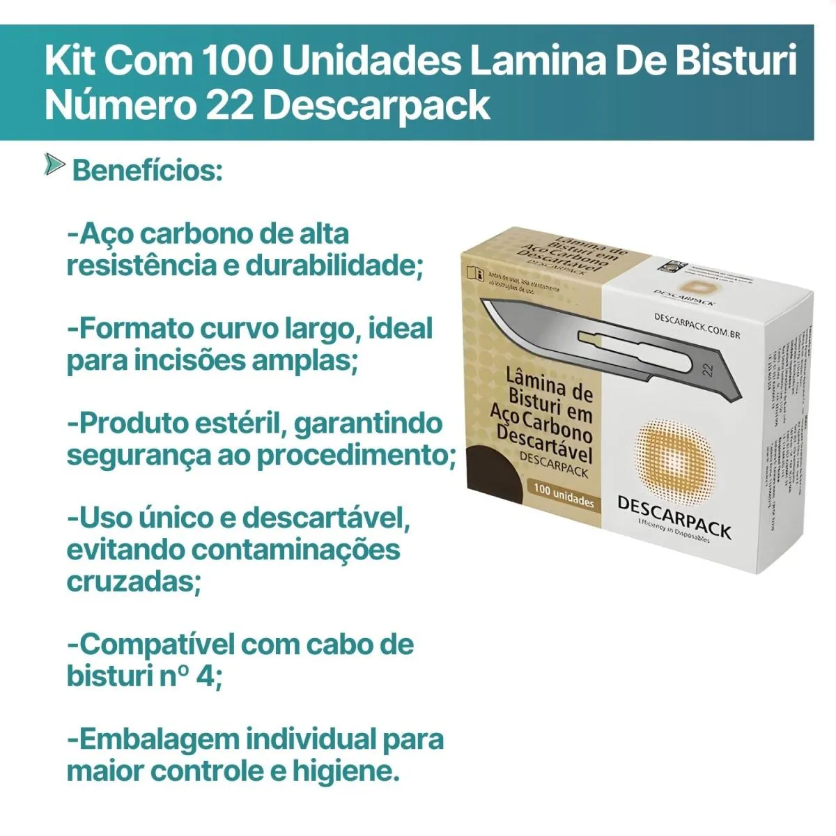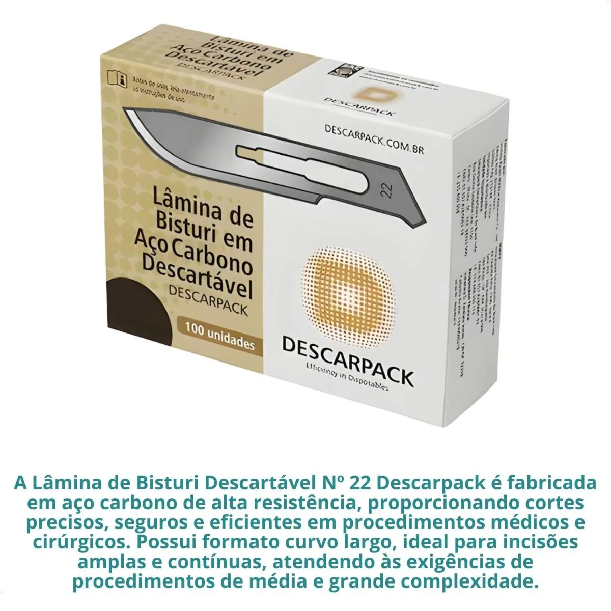 Lâmina de Bisturi Descartável Nº 22 ; Descarpack | Caixa com 100 Unidades