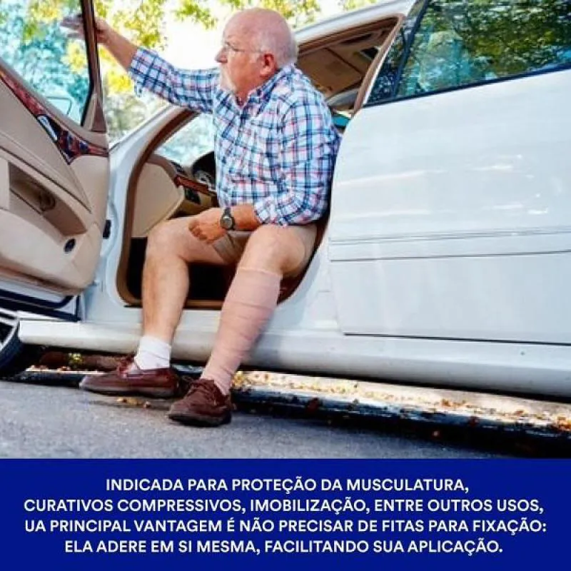 A Atadura Elástica Nexcare é um produto médico e esportivo flexível, autoaderente e poroso, que se molda perfeitamente aos contornos do corpo. É uma faixa elástica que não requer fitas adesivas adicionais para fixação e permite que a pele transpire.