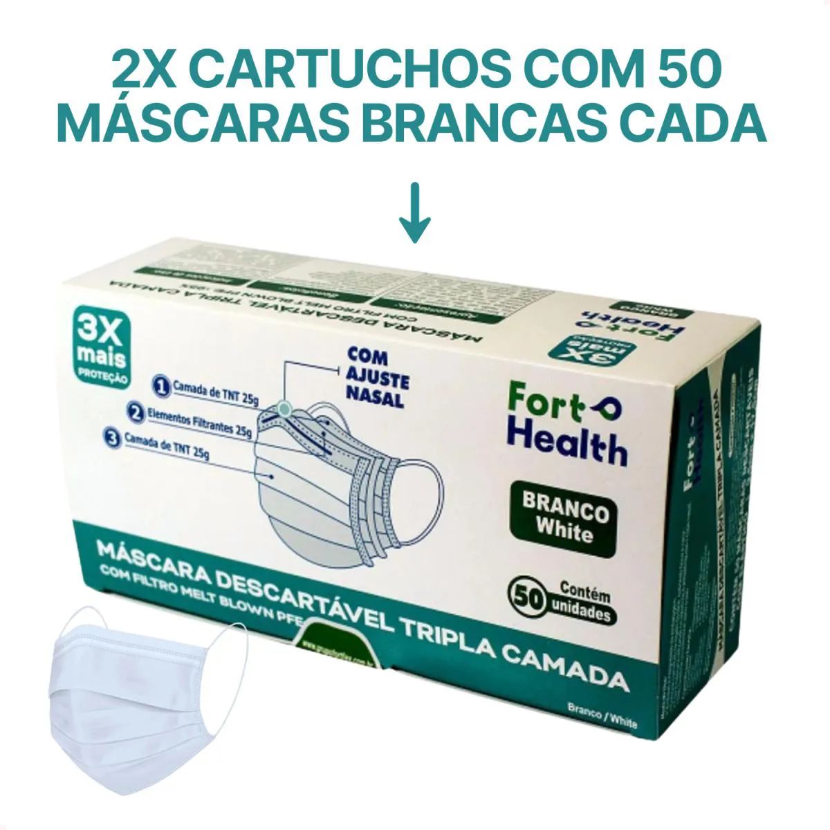 Kit com 2 Cx Mascara Descartavel Tripla com Elastico Branca