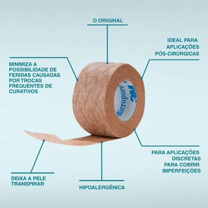 O Kit Com 2 Fitas Micropore Nexcare é um esparadrapo microporoso dermatologicamente testado, desenvolvido pela marca 3M para cuidados médicos e curativos. É uma fita adesiva especialmente projetada para fixação e proteção de ferimentos, com características únicas de suavidade e flexibilidade.