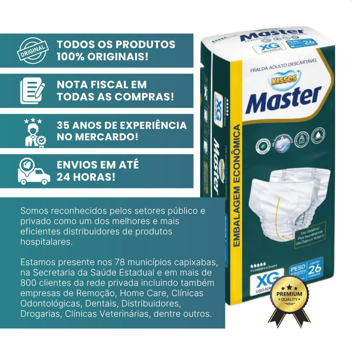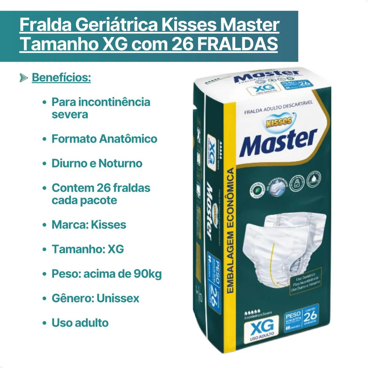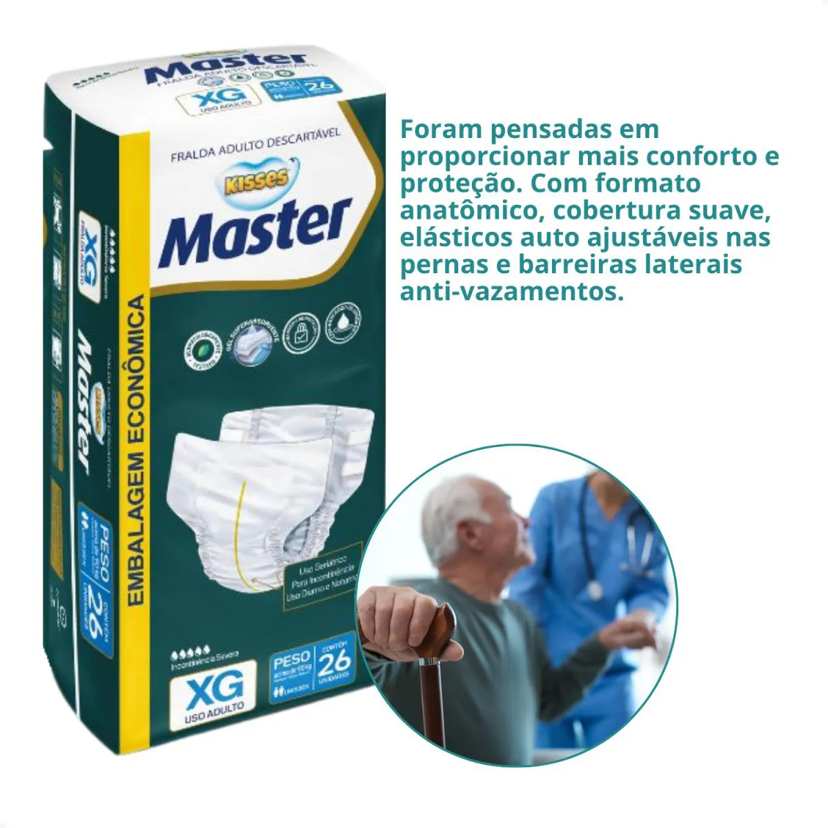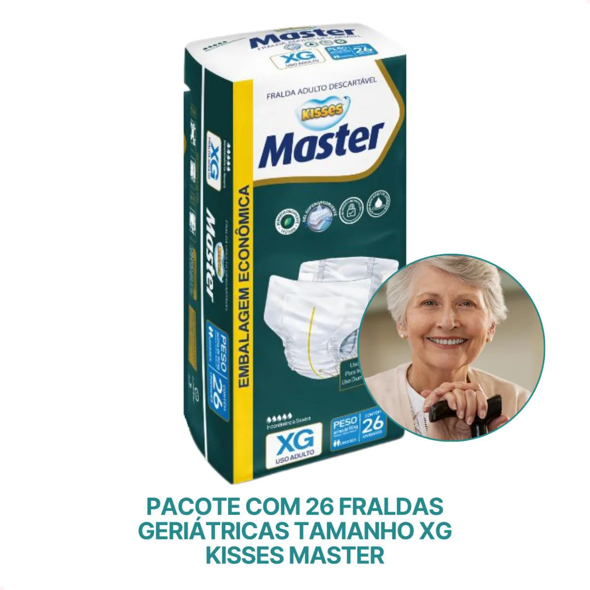 Kit com 2 Fralda Geriat Kisses Master Adulto Tamanho Xg Desc
