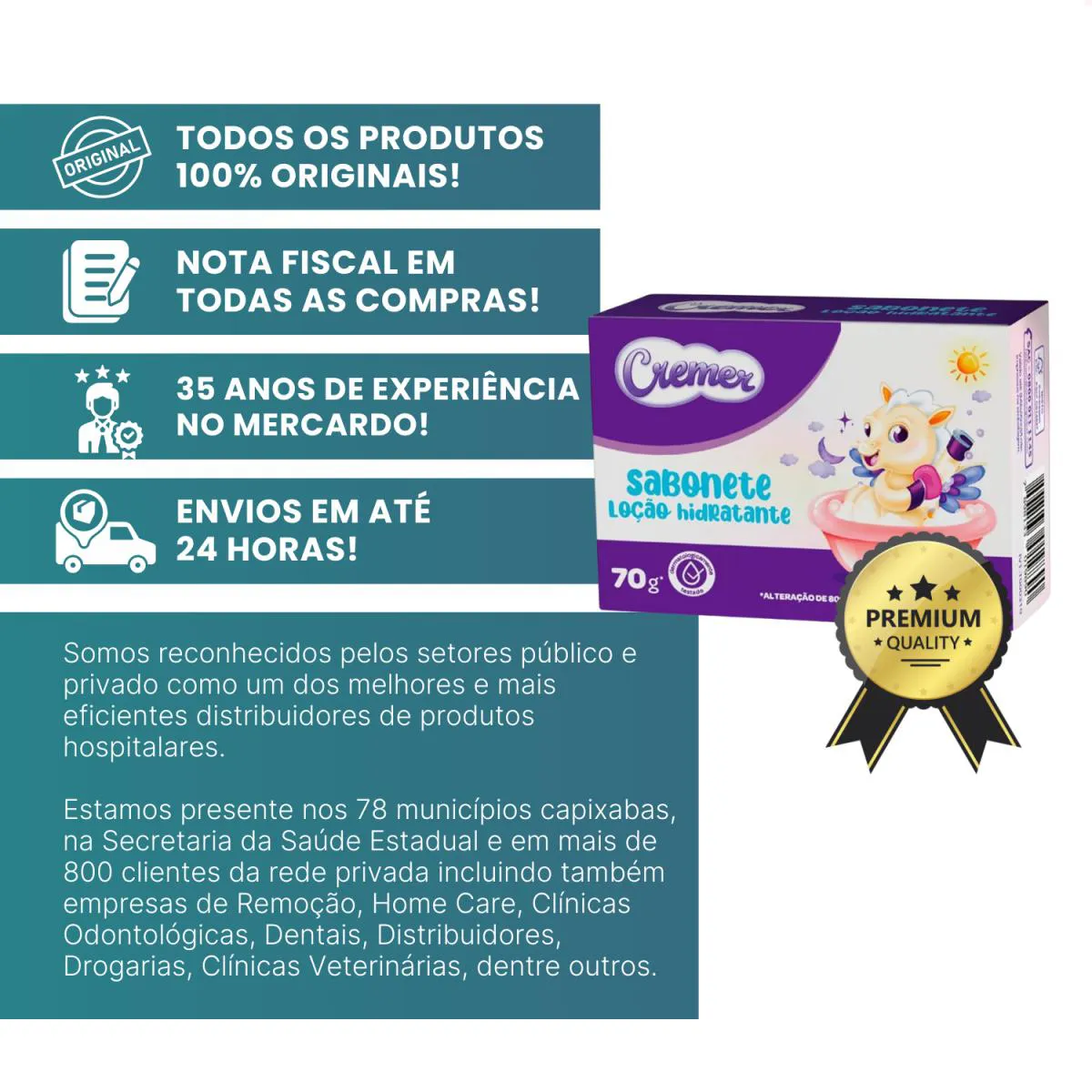 Desde 1990 atuamos com foco em licitações públicas para atendimento a hospitais e clínicas médicas do ES. Somos reconhecidos pelos setores público e privado como um dos melhores e mais eficientes distribuidores de produtos hospitalares, afinal, estamos presente nos 78 municípios capixabas, na Secretaria da Saúde Estadual e em mais de 800 clientes da rede privada incluindo também empresas de Remoção, Home Care, Clínicas Odontológicas, Dentais, Distribuidores, Drogarias, Clínicas Veterinárias, dentre outros.