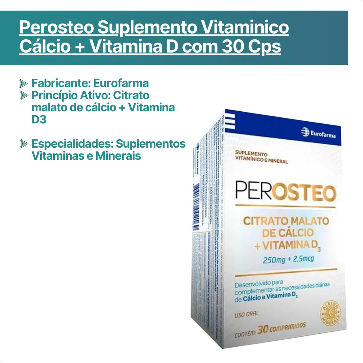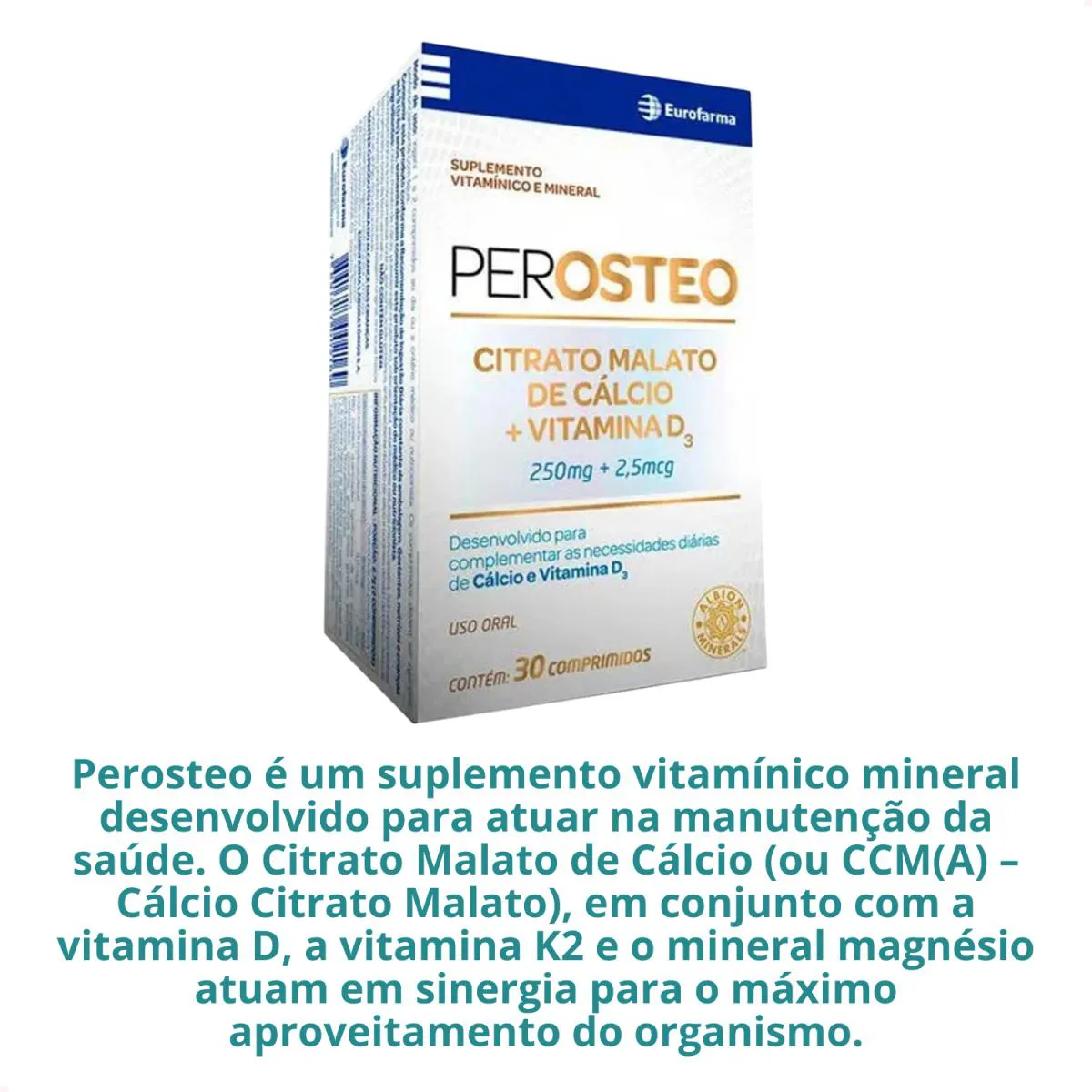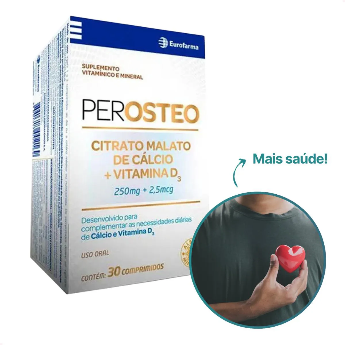 Perosteo é um suplemento vitamínico mineral que contribui para a saúde óssea dos adultos. É formulado com nutrientes essenciais que ajudam a prevenir a osteoporose, desde que associado a uma dieta equilibrada e hábitos de vida saudáveis.