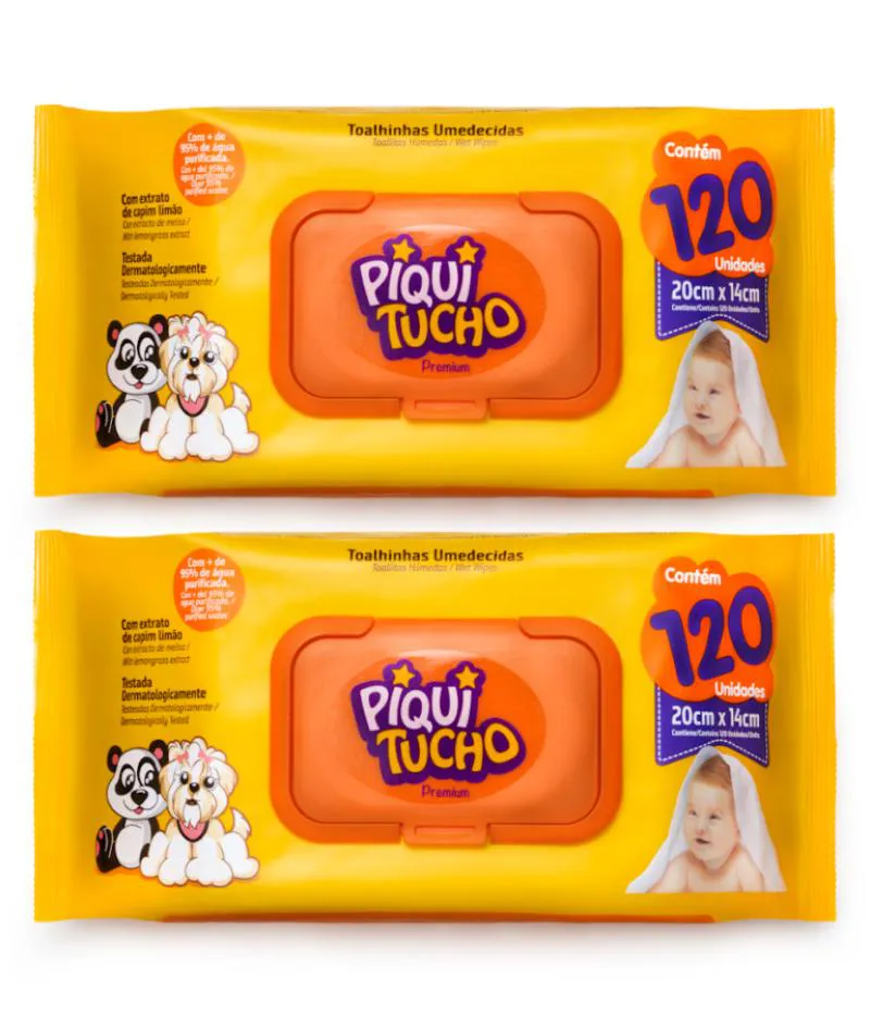 Kit Com 2 Toalhas Umedecidas Piquitucho Premium Com 120 Unidades - FW