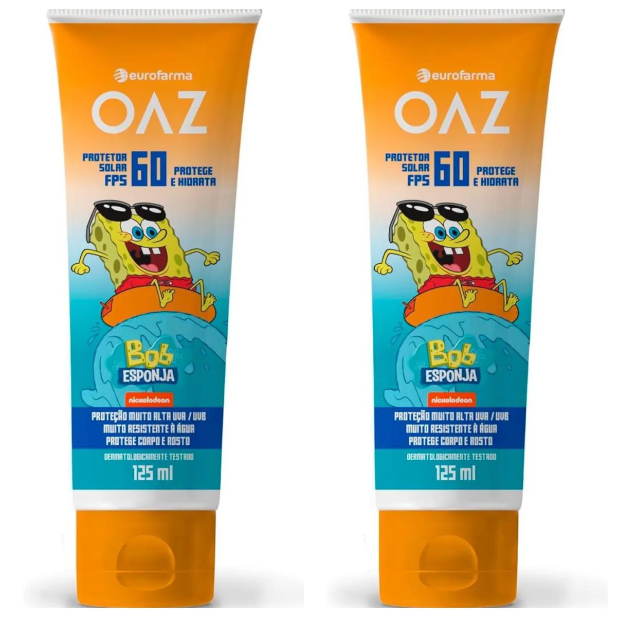 Kit com 2 Unidades de Protetor Solar Infantil Oaz Fps60 Bob Esponja 125Ml