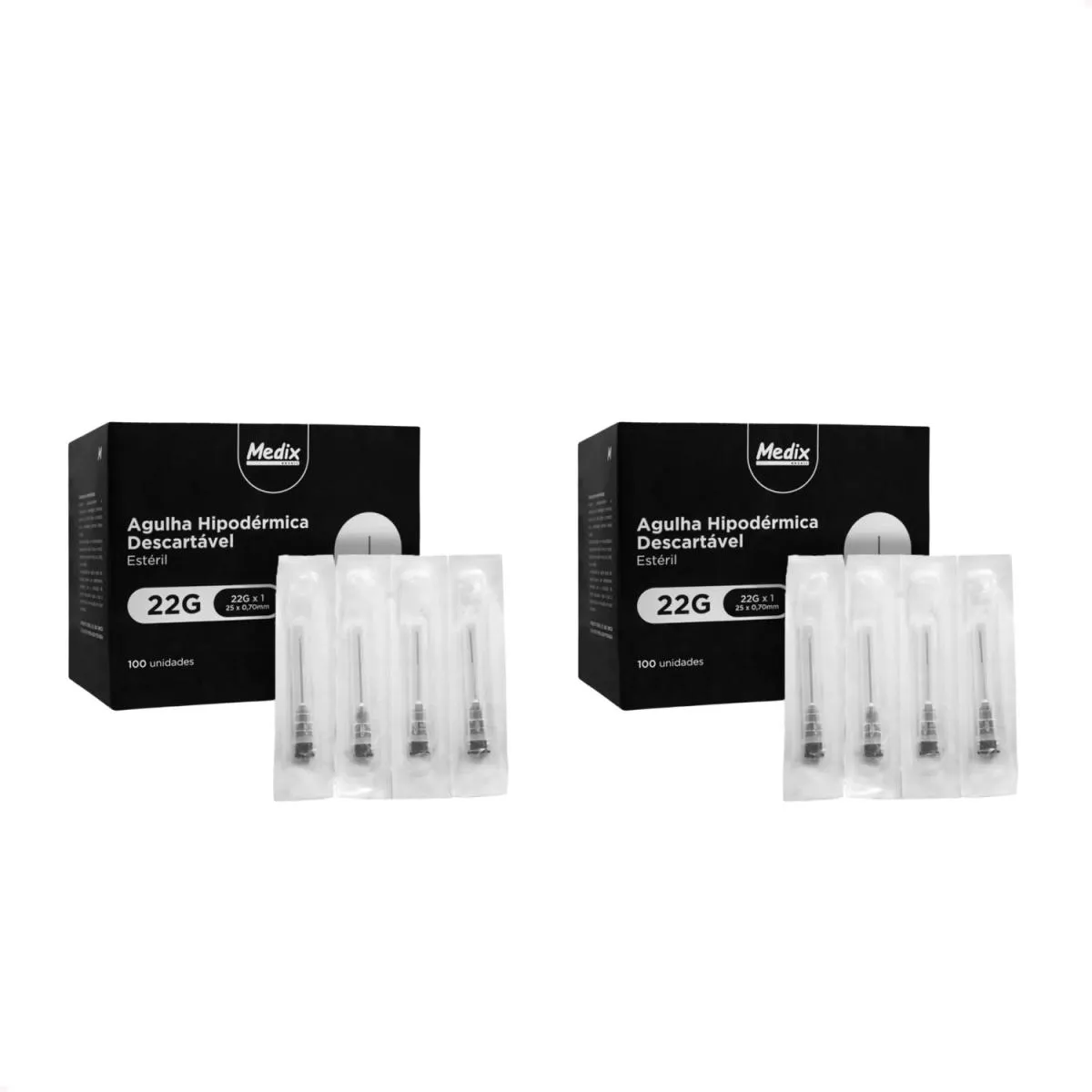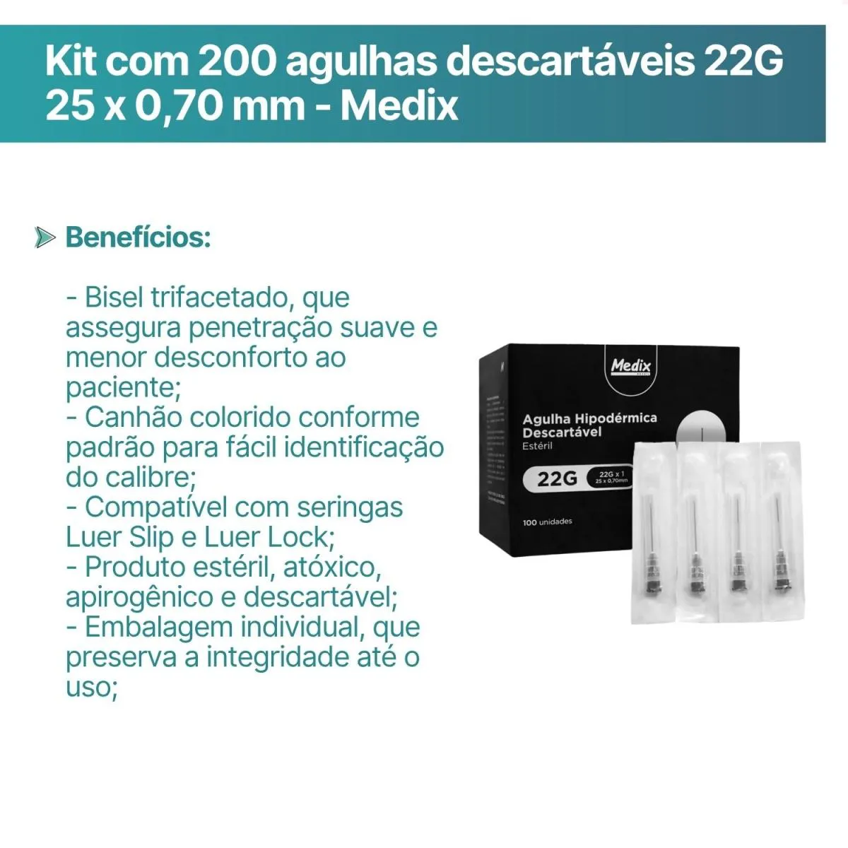 Kit com 200 agulhas descartáveis 22G 25 x 0,70 mm - Medix